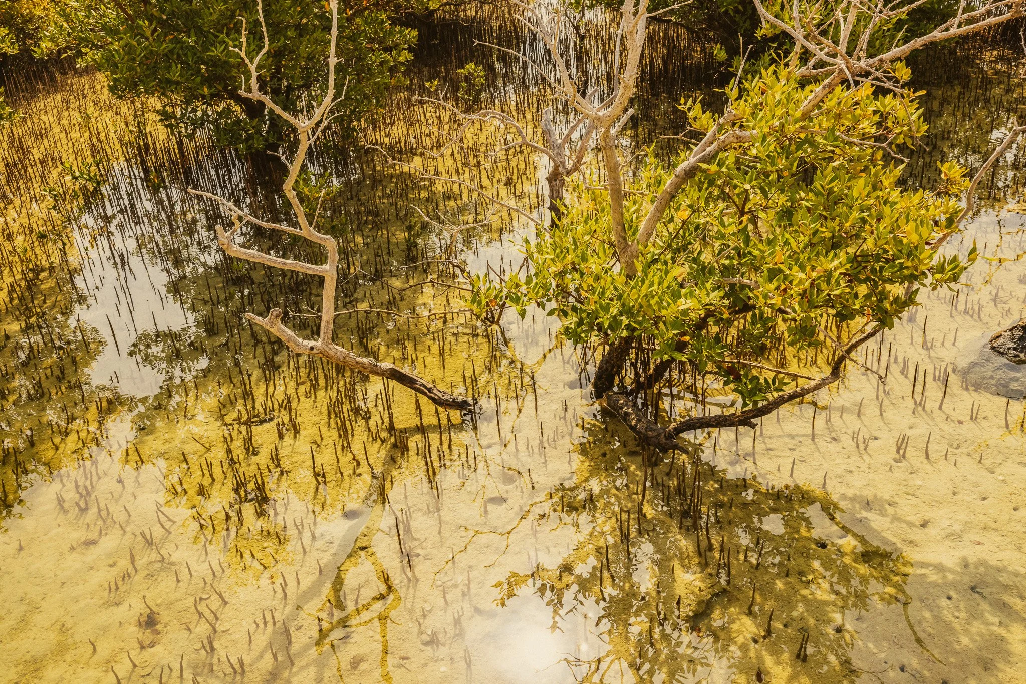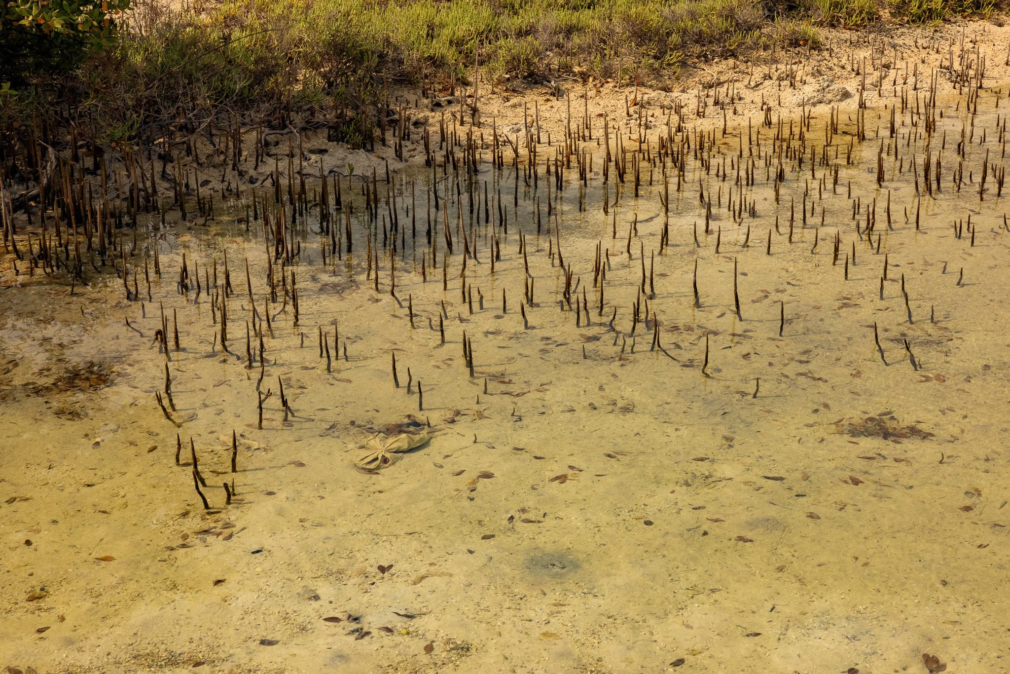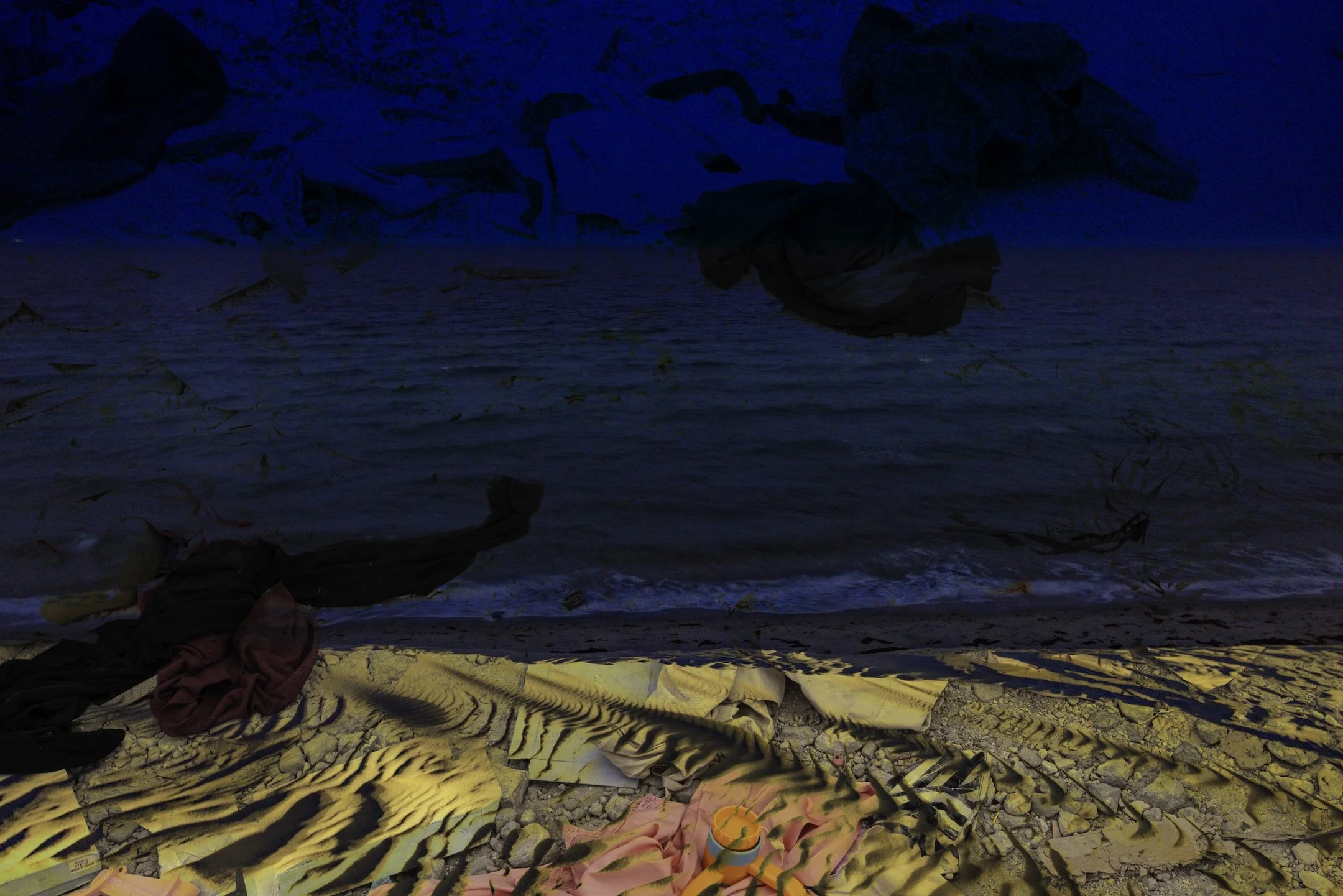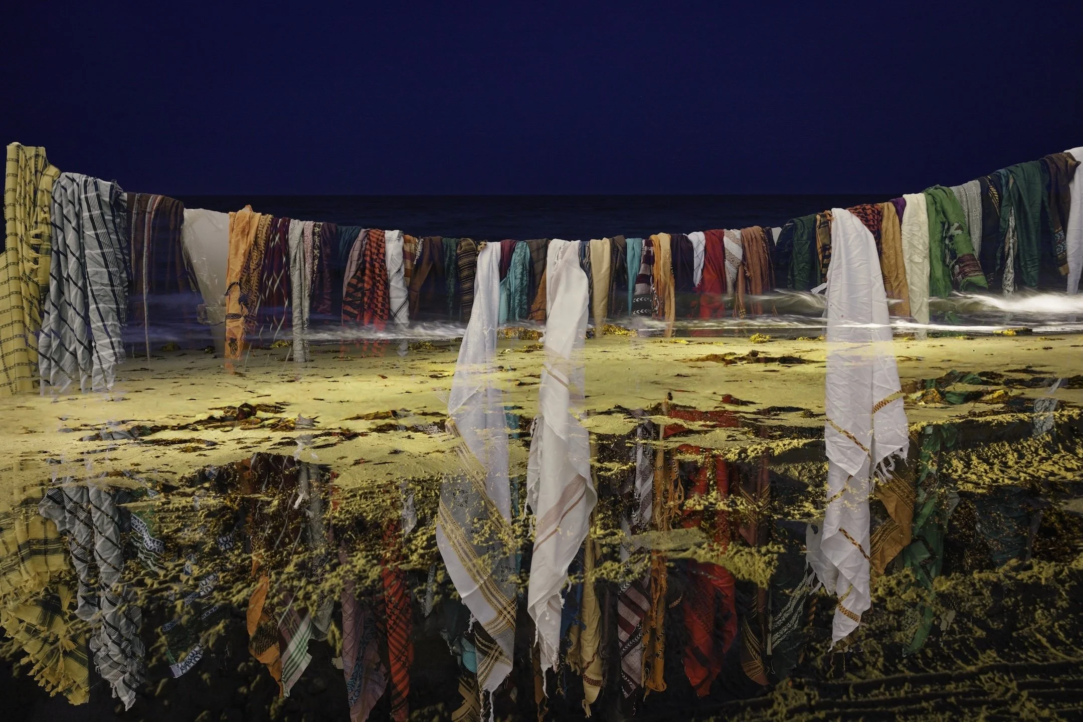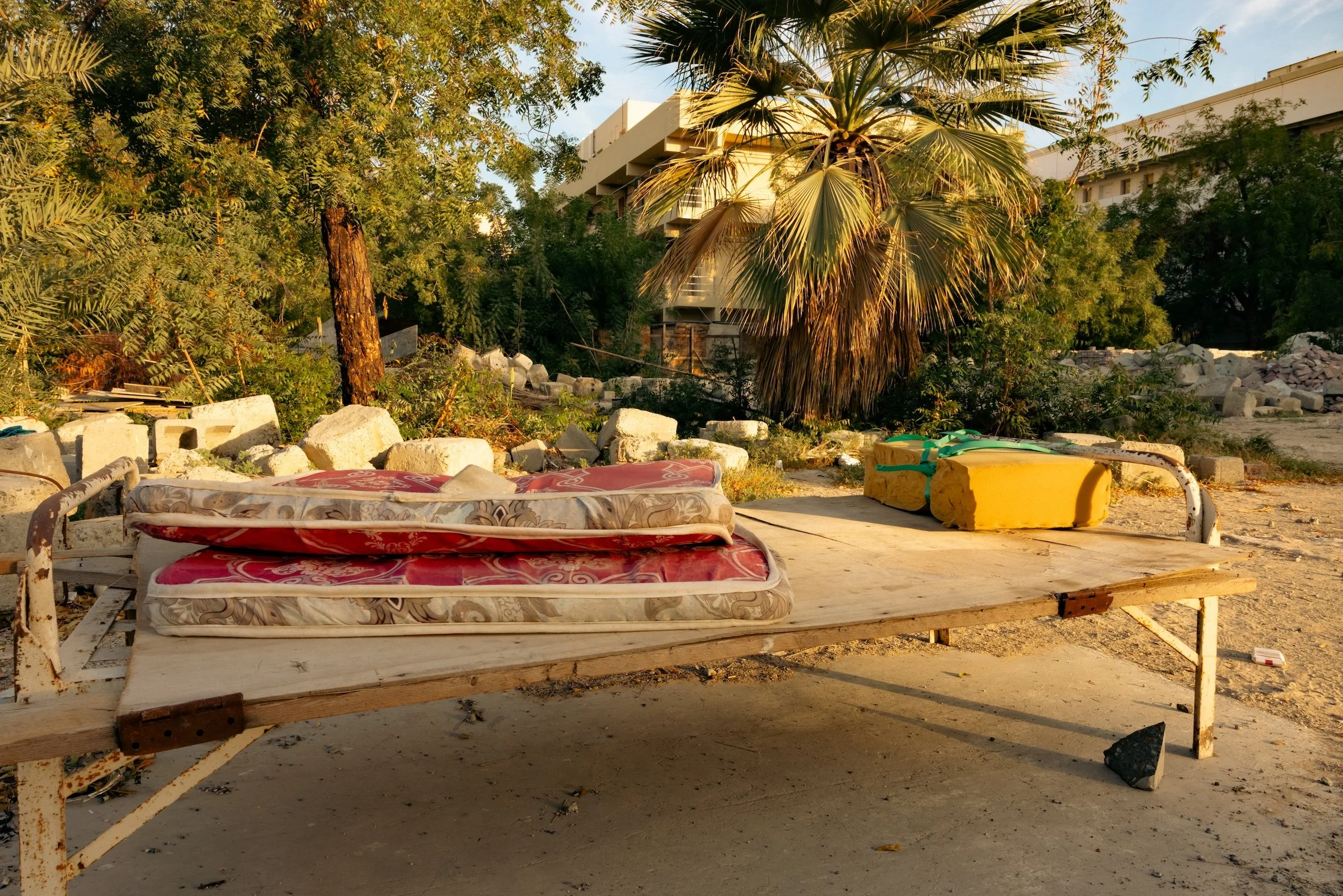 This enclave of mangrove forest and tidal flats, form a protective barrier to erosion on the coastline. Mangroves anchor themselves in shifting sands, providing shelter and stability. Where do uprooted migrant communities find anchor and belonging? Qatar’s urban development has been shaped by the labor of of over two million migrant workers—ninety-five percent of the nation’s workforce. This work is a meditation on the intertwined narratives of nature and humanity, resilience and displacement.