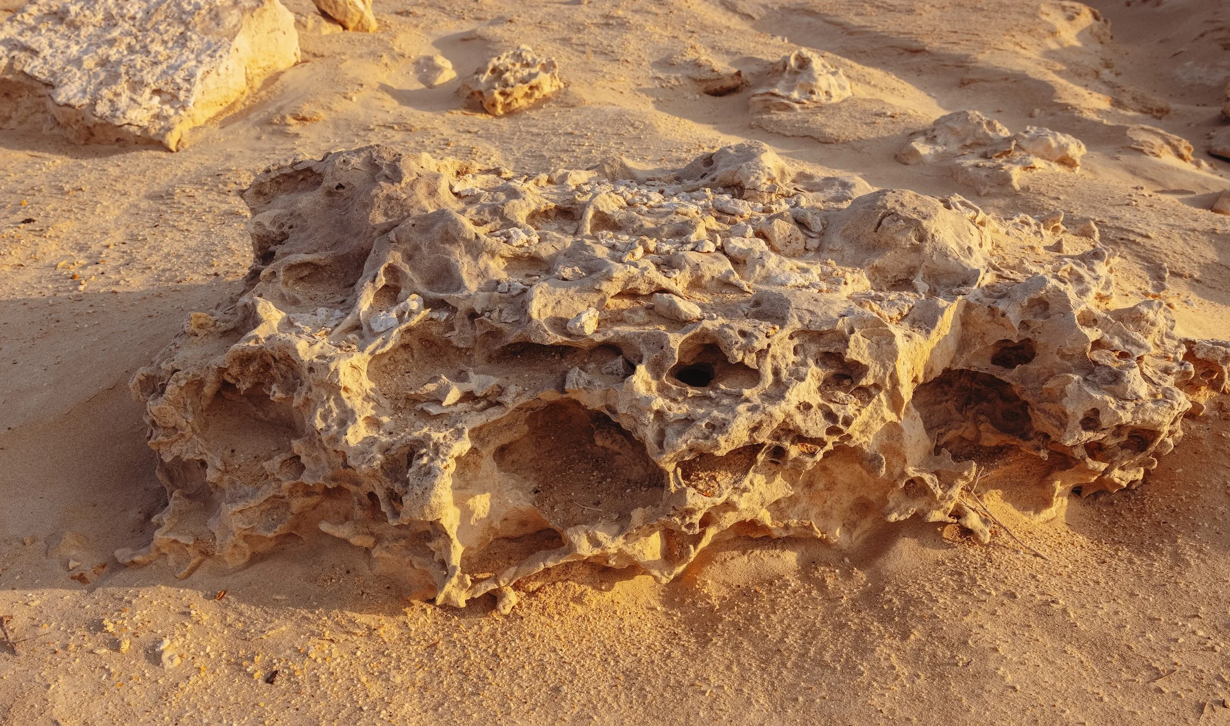 The eroded rock formations of Zekreet, sculpted over millennia by desert winds, stand as monuments to endurance over time. Their weathered shapes mirror the unseen labor of countless migrant workers, who have endured and shaped the modern landscapes of Qatar. In this shared language of erosion and labor, there is a quiet resonance: a testament to the forces—natural and human—that shape and reshape the world. The land remembers and preserves the marks we leave on it.